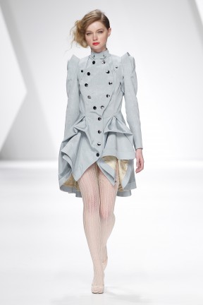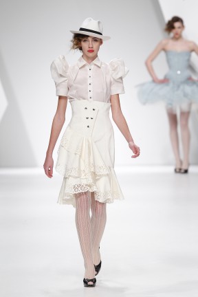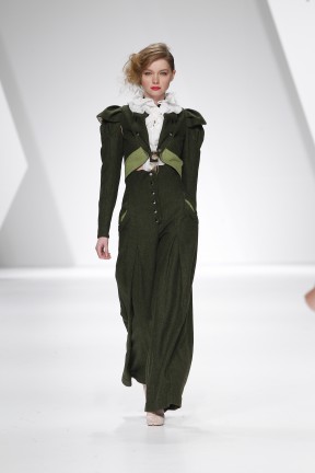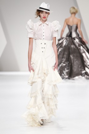 Sobretudos, invernosas, robe-manteaux, blazers, boleros, vestidos, camisas, espartilhos, saias e calças de várias silhuetas; em derivações de cores da própria bandeira nacional: do vermelho – vermelhos, rosas, bordeaux; o verde em vários tons; do amarelo – os caramelos, cremes e chás; o azul escuro; preto e branco; em lãs - fazendas com mohair, feltro em casacos, sarjas várias, crepe; em algodões – piquês, popelines com acabamento encerado e metalizado; em sedas - cetim duchesse, faille, moiré, gorgorão, organza, tule, marrocain. O corte e metodologia de construção das peças, desenvolvidos pela Storytailors e uma nova abordagem à alfaiataria e corseterie. Enjoy!